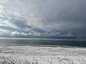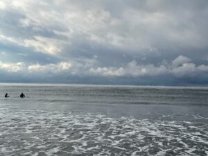 その中に、ポツリ、ポツリとサーファーの姿が。
